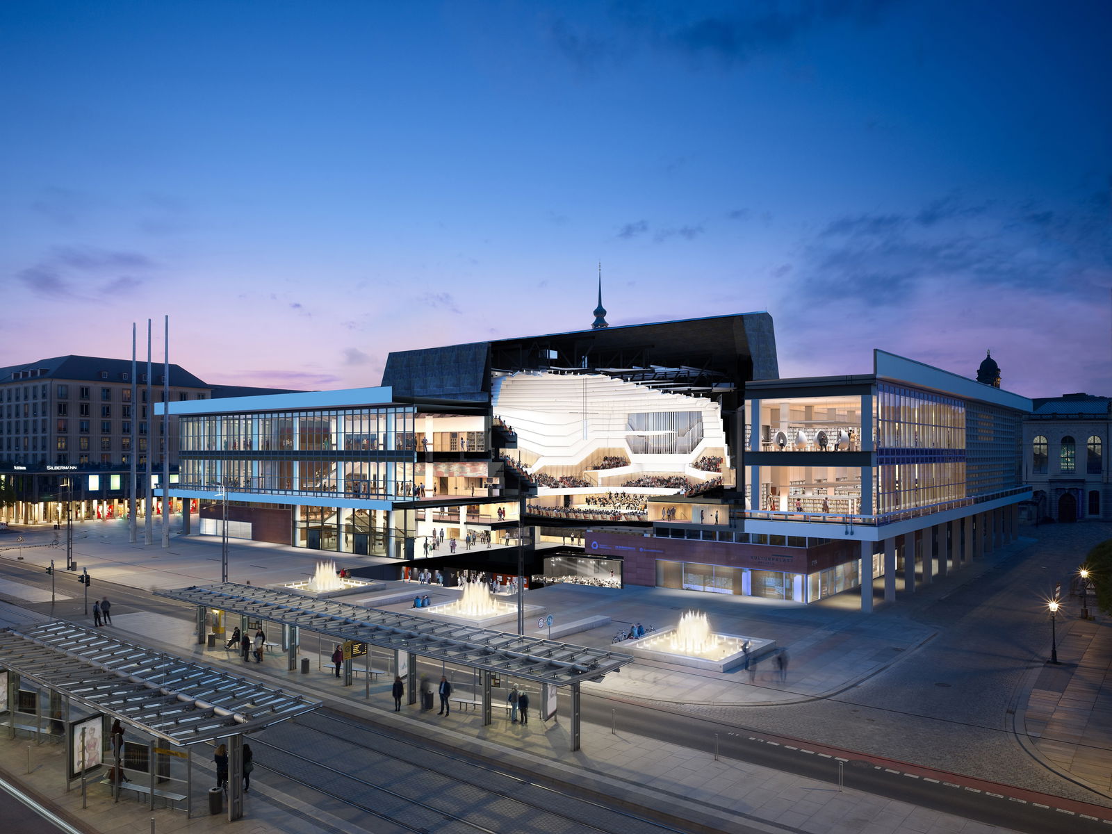 ›Wir brauchen Orte der Begegnung, Vereinzelungsorte haben wir schon genug!‹ Was Wolfgang Schäuble in seiner Festrede zur Eröffnung des Kulturpalastes am 28. April 2017 sagte, war Mahnung und Verheißung zugleich. Heute, zehn Jahre später kann Dresden mit Stolz behaupten: der neue Kulturpalast ist für die Dresdnerinnen und Dresdner und die Gäste der Stadt so ein Begegnungsort geworden, ein angesagter ›Third Place‹, wo man sich ohne Zutrittsbarrieren aufhalten kann, wo es vielfältige Angebote von Konzert über Lesung bis hin zu Vortrag, Workshop und Führungen gibt. Der mit dem Café ›Tutti‹ und seinem Panoramablick auf den Altmarkt, den großzügigen und hochmodern eingerichteten Bibliotheksräumen, den Ausstellungs- und Erfahrungsräumen des Wissenschaftsforums COSMO und des Zentrums für Baukultur (ZfBK) und nicht zuletzt dem kleinen Saal des Kabaretts ›Die Herkuleskeule‹ jährlich über eine Million Menschen anzieht.