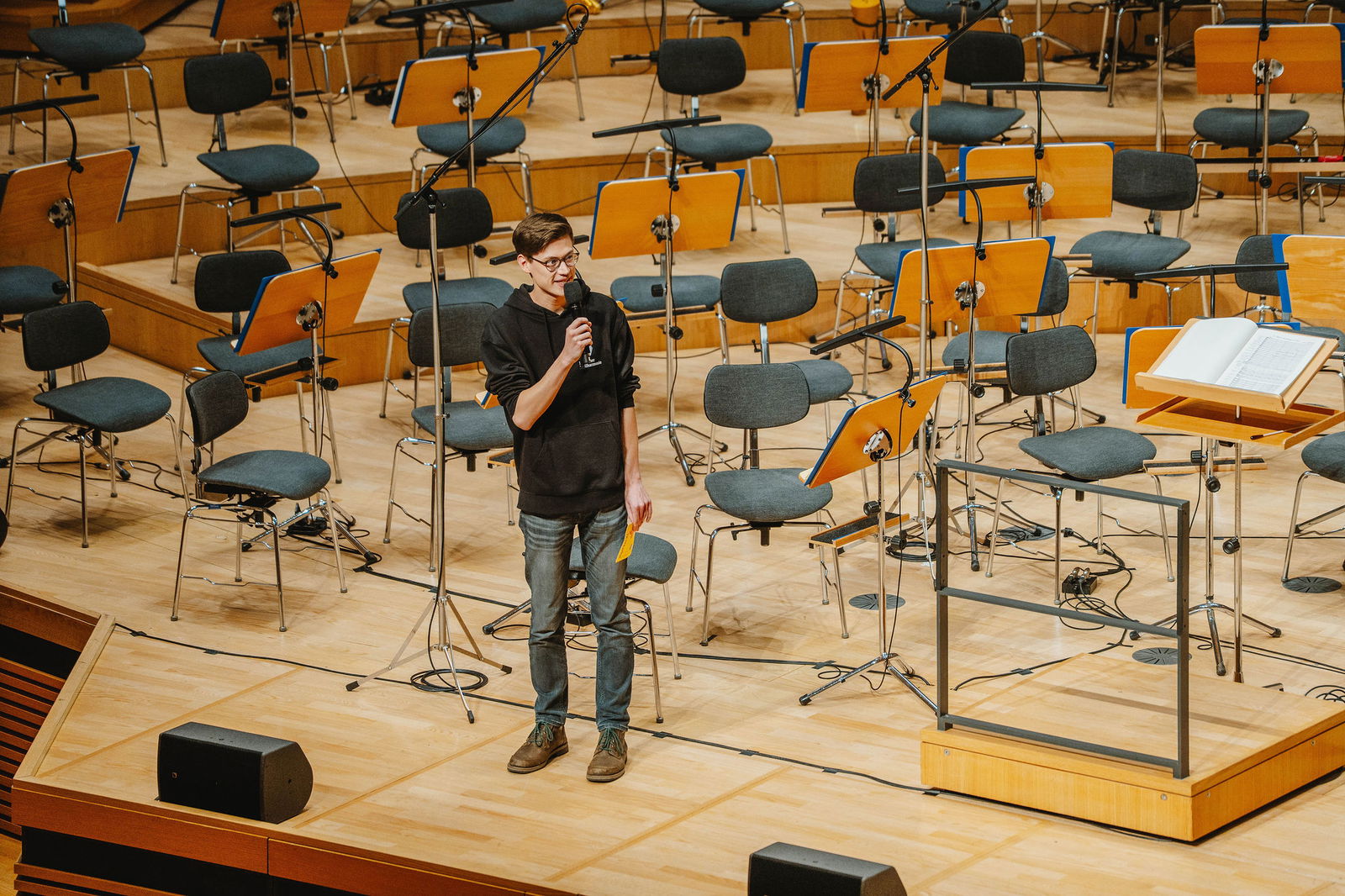 Mittendrin lädt ein, mitten im Orchester Platz zu nehmen: eine öffentliche Probe mit unserer Ersten Gastdirigentin, Tabita Berglund, als Werkstatt-Erlebnis, in dem man die Musik dort erlebt, wo sie entsteht.